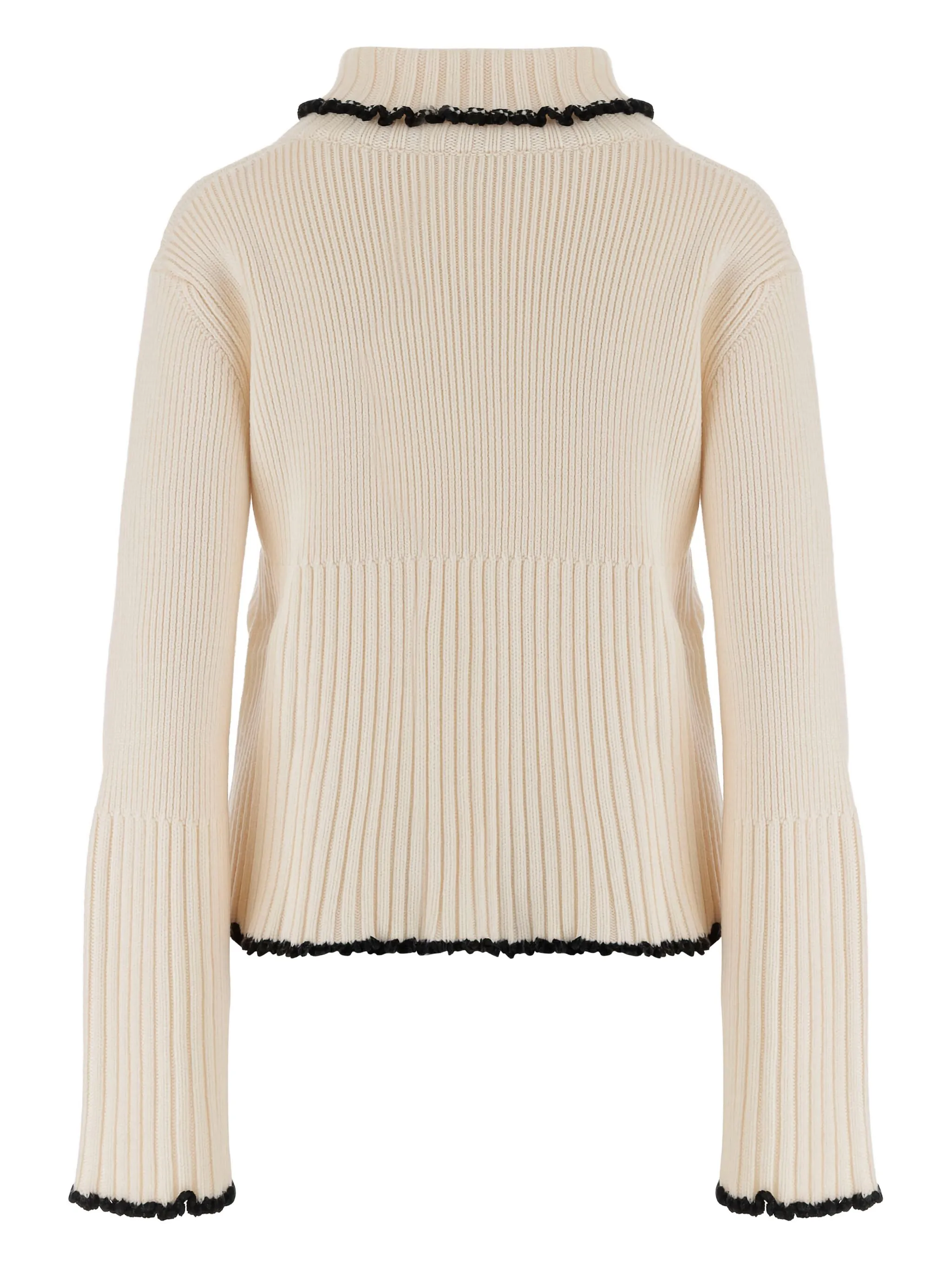 ribbed high-neck ruffled sweater