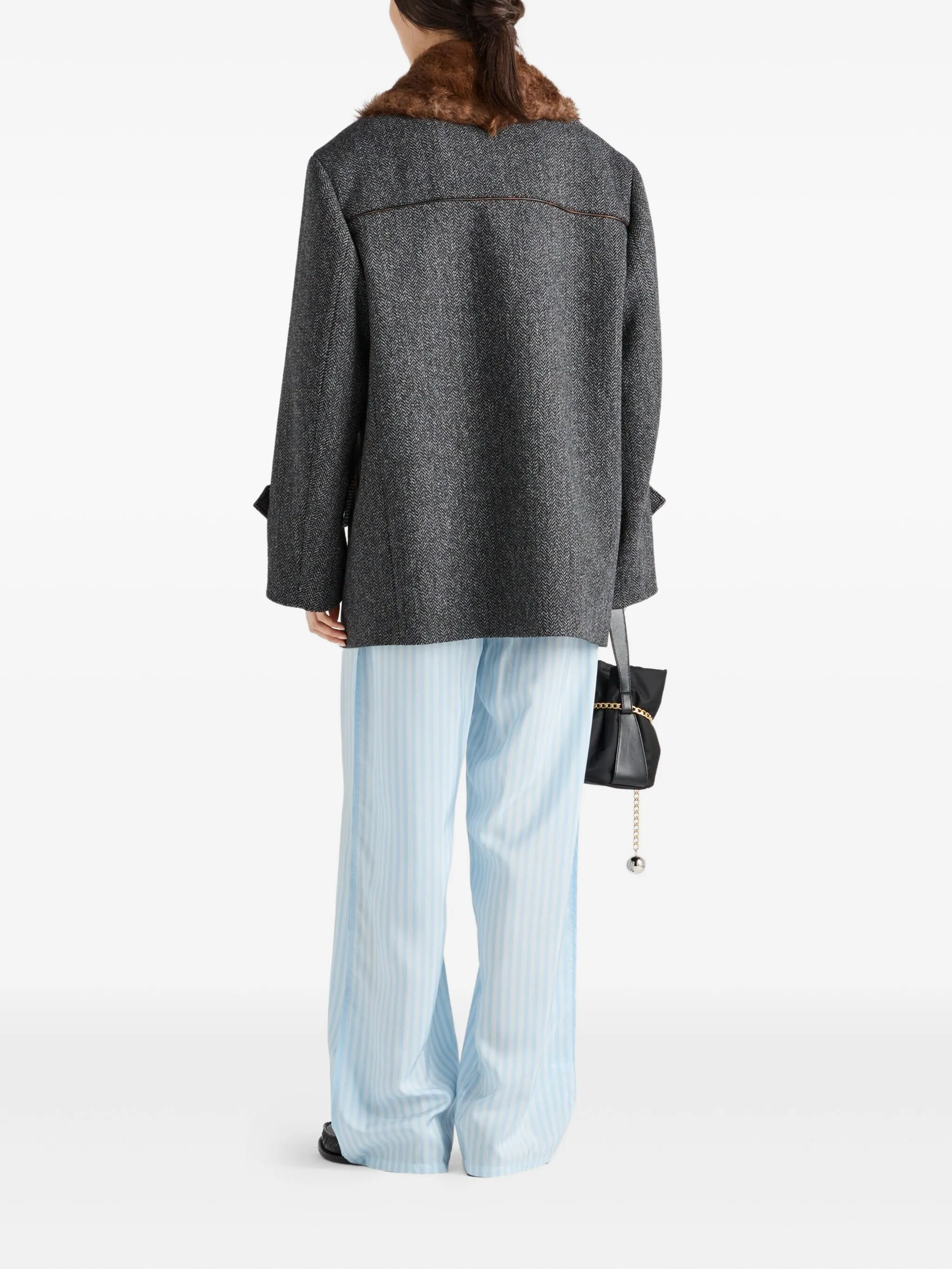 herringbone shearling-collar coat